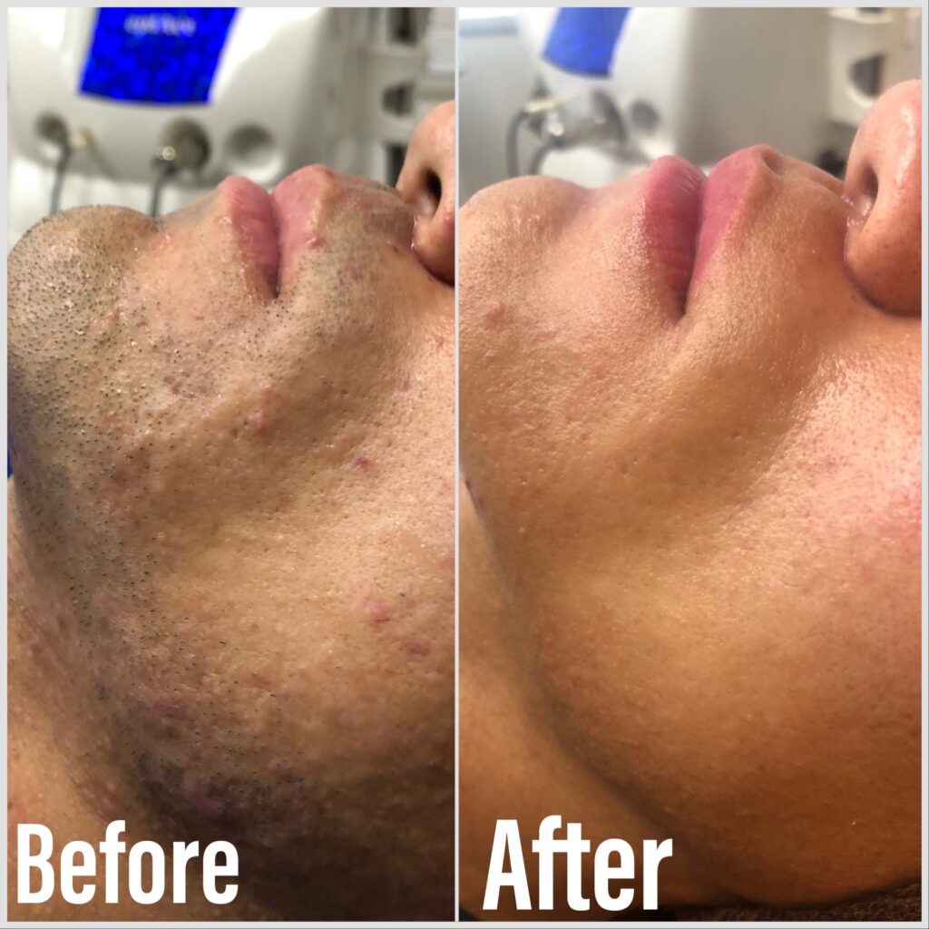 眉が整った分、ヒゲの青さや首元の毛が目立つようになります。